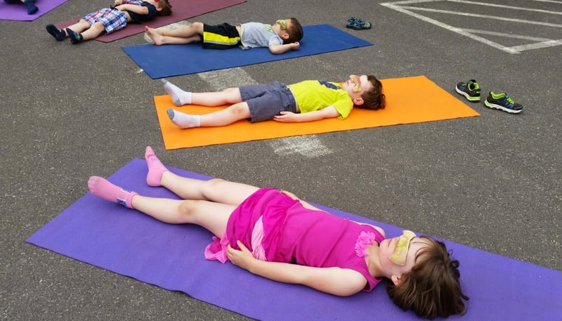 Mô tả: Bé chỉ cần nằm xuống, để lưng nằm thoải mái trên thảm tập, hai tay thả lỏng xếp dọc thân. Bạn hướng dẫn bé hít vào thật sâu, thở ra thật chậm. Bé cứ thế nằm hít thở, tinh thần thoải mái tựa như thả người trên đám mây mềm mại.