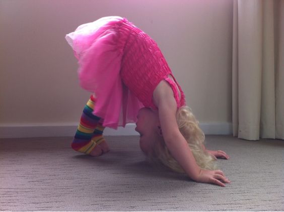 Mô tả: Đây là tư thế khó nhất trong chuỗi tư thế Yoga cùng bé. Đầu tiên, bé vào tư thế như bò trên thảm, chống hai tay hai chân bằng nhau xuống mặt thảm. Sau đó, bạn hướng dẫn bé đẩy hông lên cao, duỗi thẵng hai tay sao cho hai gót chân chạm mặt thảm. Lưu ý, bạn cố gắng chỉnh cho lưng bé và hai chân bé thẳng nếu có thể nhé.
