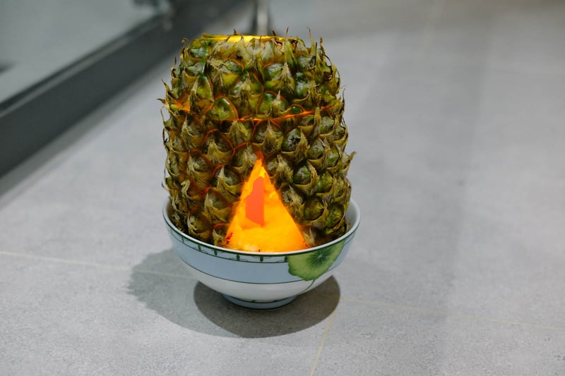 Bước 3: Bạn cắt một hình tam giác nhỏ trên vỏ thơm để ánh sáng nến thoát ra ngoài.