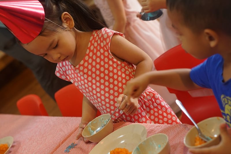 Bốn lần sinh nhật của Silk, mình đều tổ chức tại trường và ở nhà. Vì theo mình, đó là những không gian lý tưởng mà Silk có thể thoải mái chung vui cùng gia đình và các bạn. Mình thường tự trang trí tại nhà hoặc nhờ trường phụ giúp bày trí buổi tiệc đơn giản tại lớp.