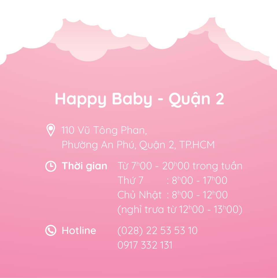 Happy Baby Q.10: 134/2D Thành Thái, Quận 10 Happy Baby Q.2: 110 Vũ Tông Phan, P. An Phú, Quận 2 Happy Baby TB: 122 Đường Số 1, Q.Tân Bình