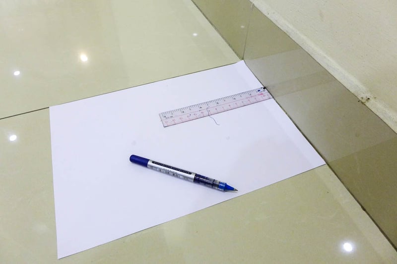 Bước 1: Dán tờ giấy trắng xuống sàn nhà, một cạnh đặt sát mép tường. Bạn cho bé đứng lên trên tờ giấy, thẳng người, gót chân tựa vào tường.